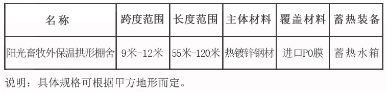 陽光畜牧外保溫拱形棚舍配套設備包括:棚舍主體、骨架系統、外覆蓋系統、放風系統、保溫系統等。